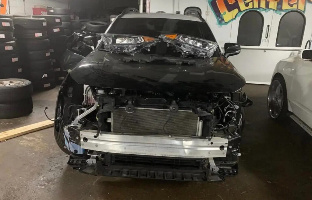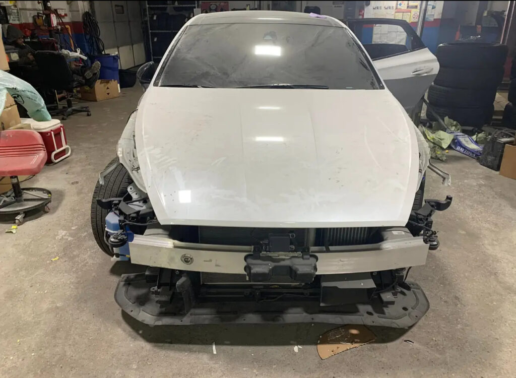 Collision Service & JR Tires with significant front-end and structural damage caused by a collision. Our experienced technicians performed a full inspection to identify both visible and hidden damage, ensuring every repair met safety and quality standards.